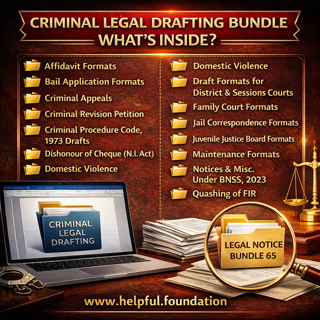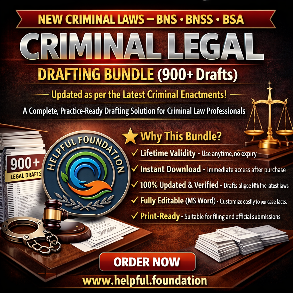 Criminal Legal Drafting Bundle (900+ Drafts) is a comprehensive, practice-ready drafting solution created for advocates, law firms, legal interns, and drafting professionals engaged in criminal litigation.