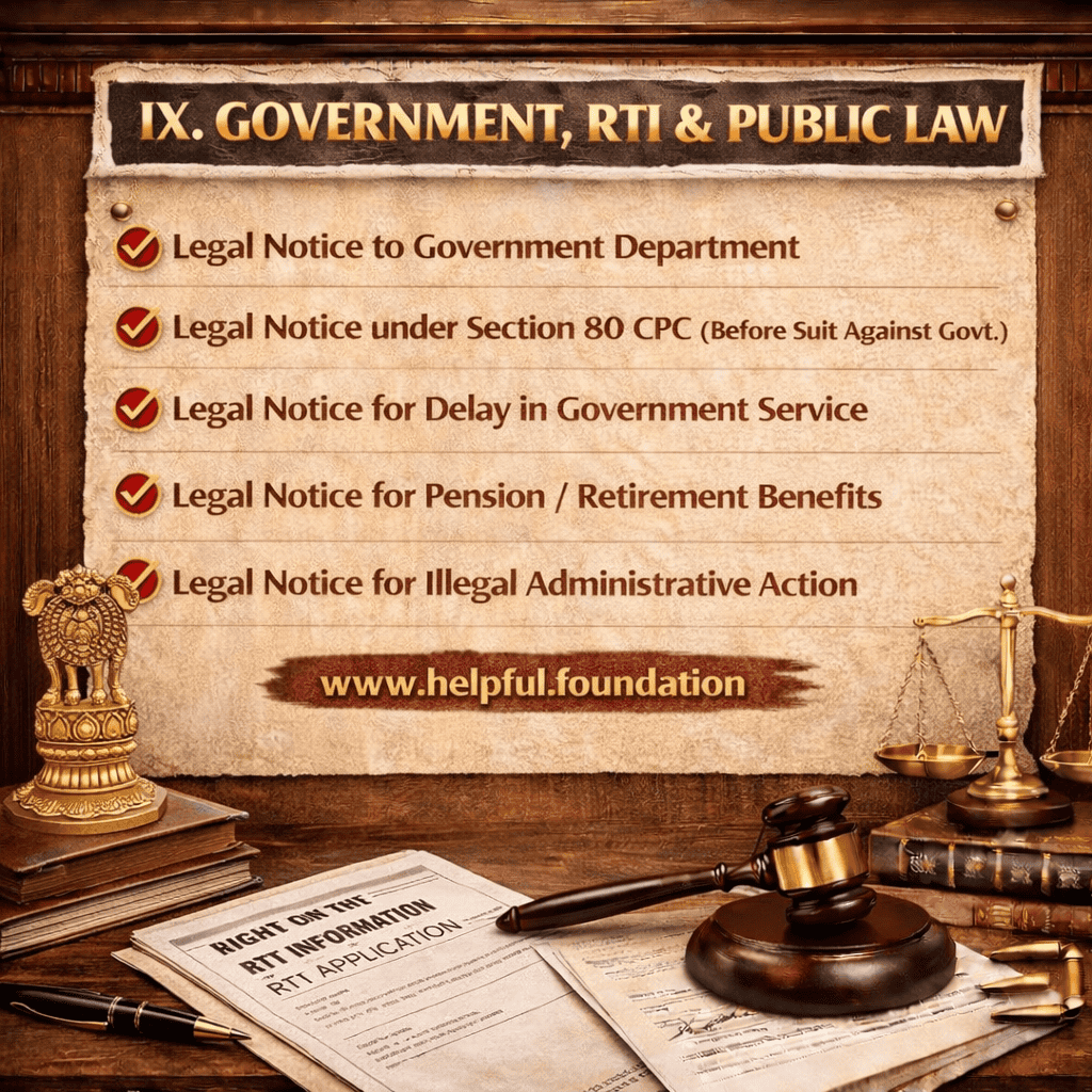 • Government, RTI & Public Law – Section 80 CPC notices, pension issues, administrative delay